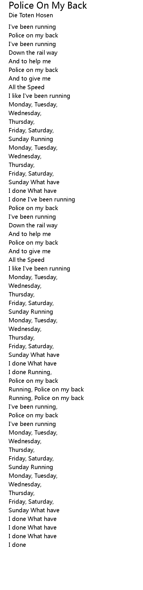 | Running, Police on my back | |