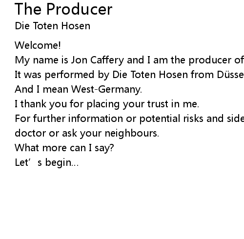 | It was performed by Die Toten Hosen from Düsseldorf and made in Germany. | |