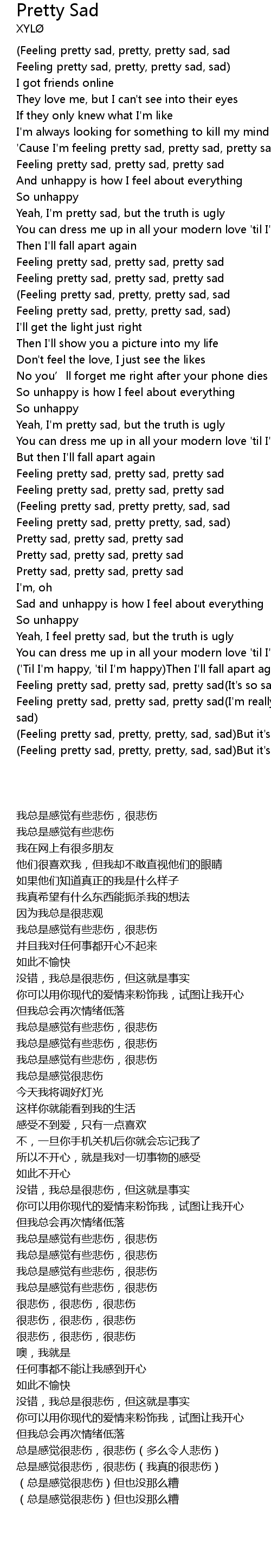 | [02:53.49] | Feeling pretty sad, pretty sad, pretty sad(It's so sad, so sad) |