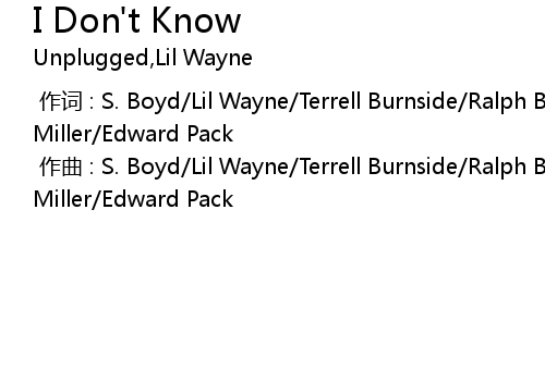| [00:00.000] | 作曲 : S. Boyd/Lil Wayne/Terrell Burnside/Ralph Boykins/Damon Miller/Edward Pack |