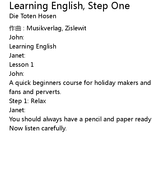 | Song | Learning English, Step One |