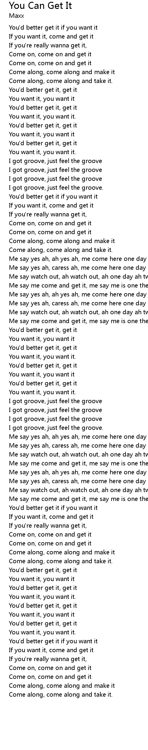 Me say me come and get it, me say me is one the way. |