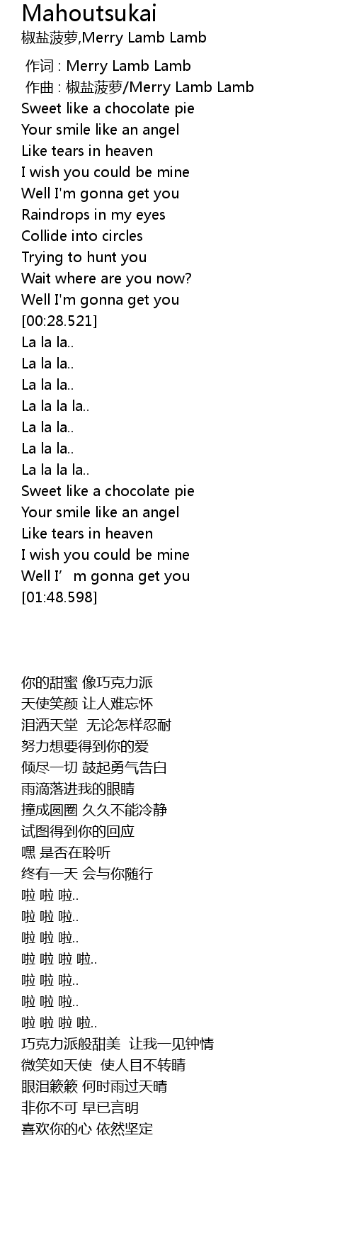 | [00:00.000] | 作词 : Merry Lamb Lamb |