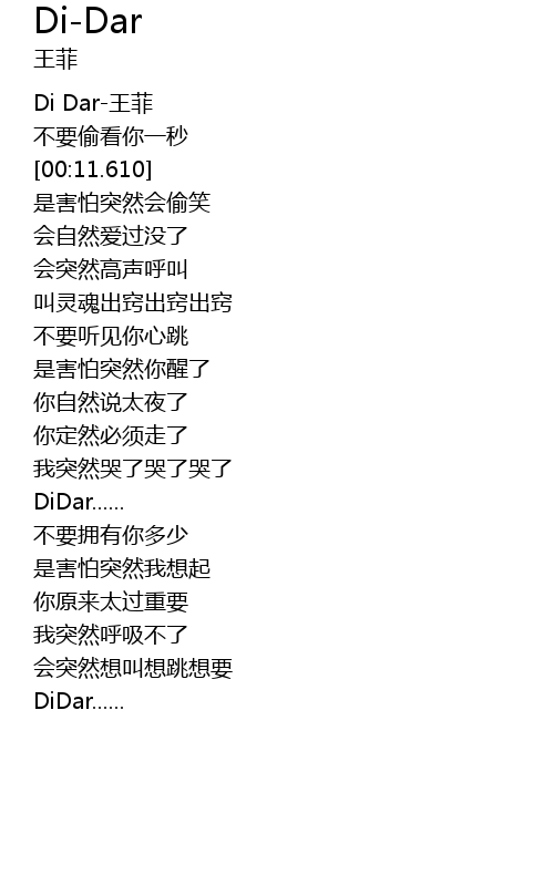 | [00:01.820] | Di Dar-王菲 |