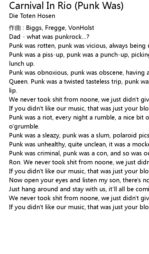 | Song | Carnival In Rio (Punk Was) |