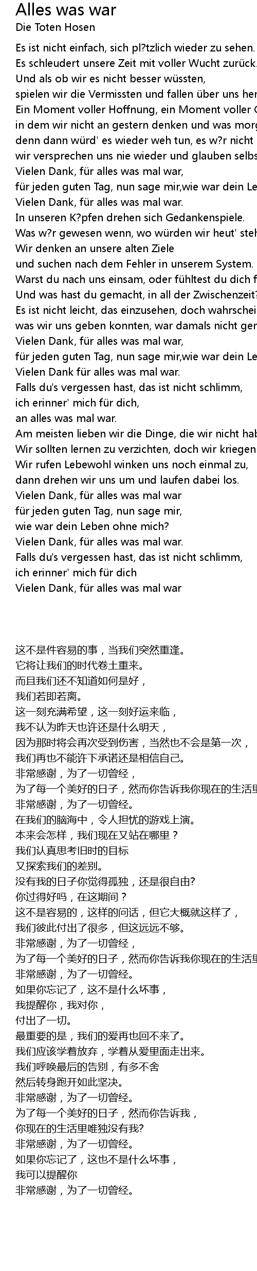| [00:43.46] | Vielen Dank, fü r alles was mal war, |