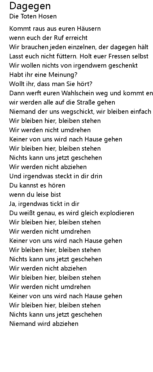 | Niemand der uns wegschickt, wir bleiben einfach stehen | |