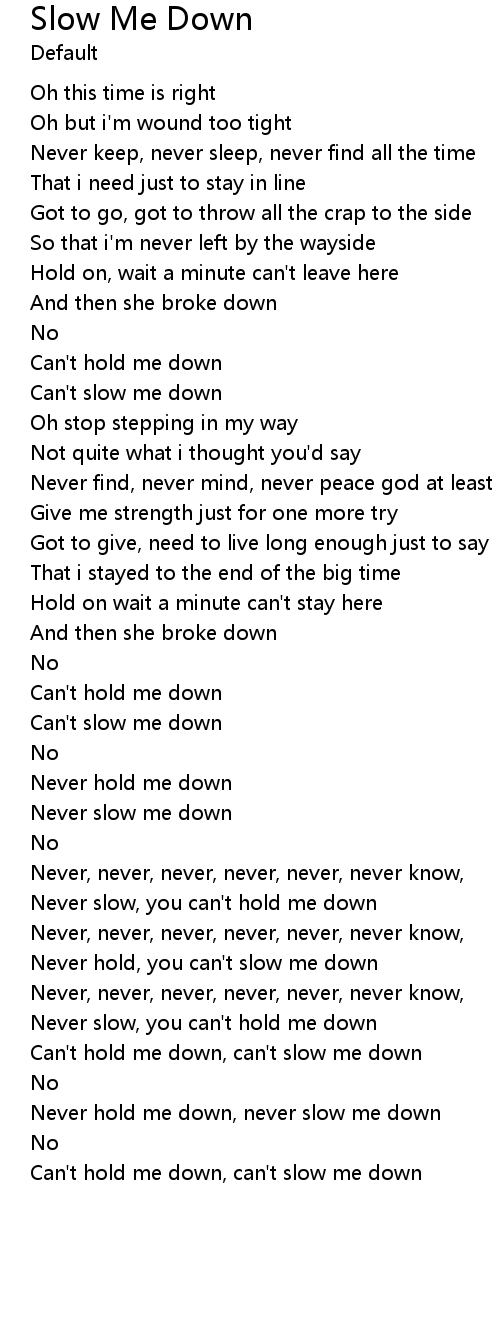 Never hold me down, never slow me down |