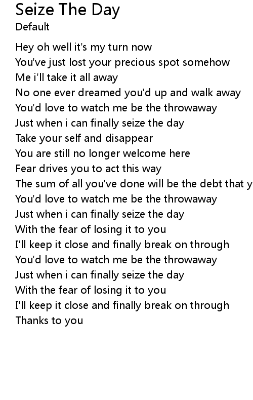 Just when i can finally seize the day |