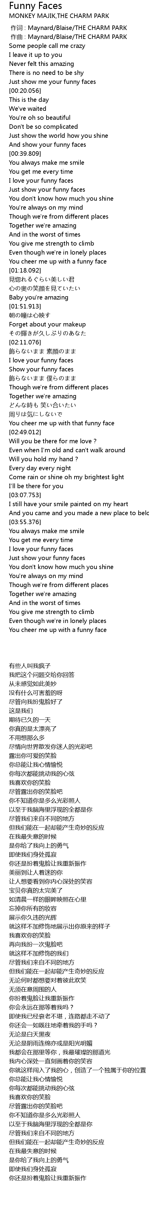 | [02:25.316] | Show your funny faces |