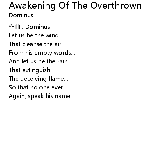 | Song | Awakening Of The Overthrown |