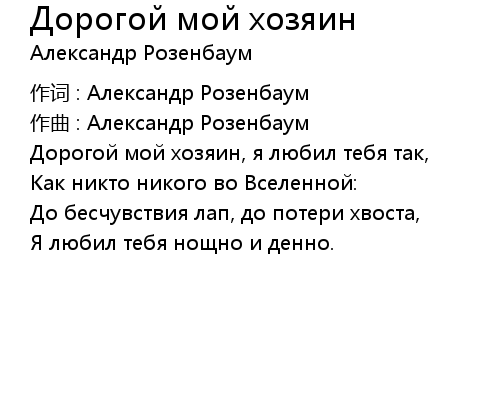 | Song | Дорогой мой хозяин |
