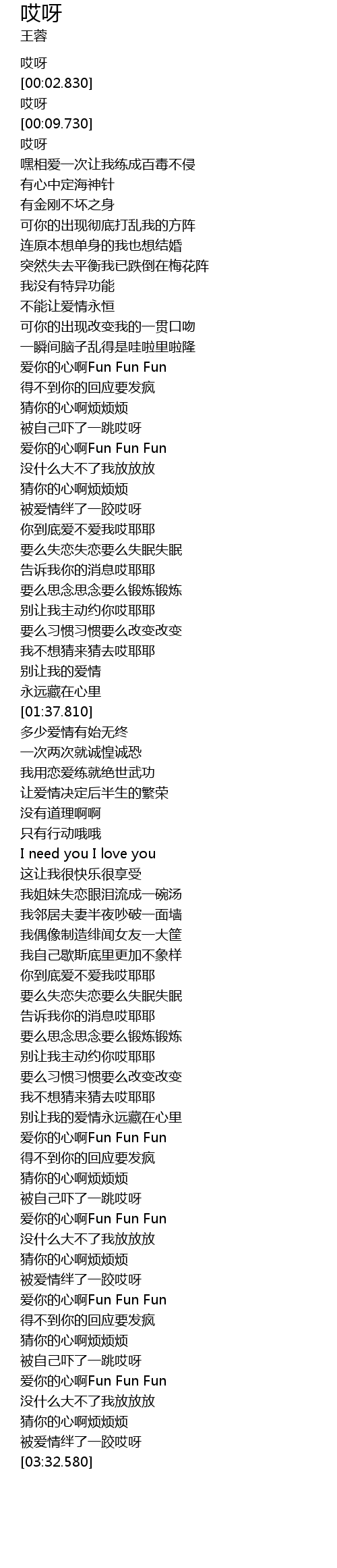 | [03:19.320] | 爱你的心啊Fun Fun Fun |