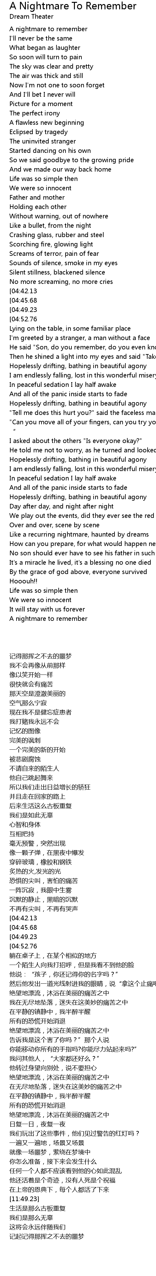 | [02:20.10] | A nightmare to remember |