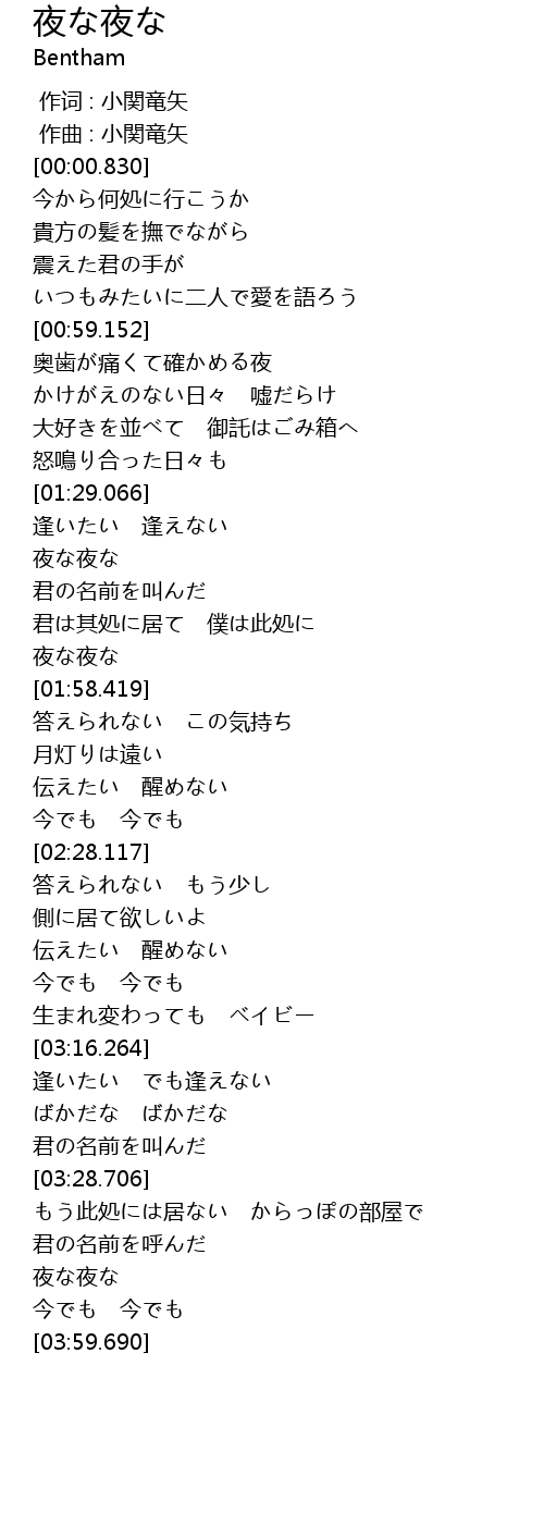 | [00:00.415] | 作曲 : 小関竜矢 |