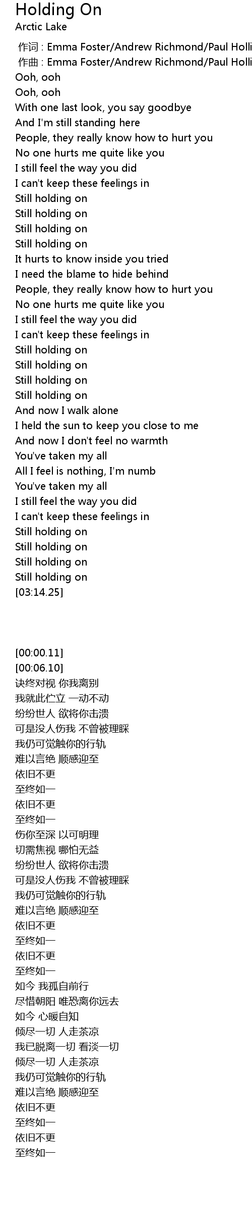 | [00:00.005] | 作曲 : Emma Foster/Andrew Richmond/Paul Holliman |