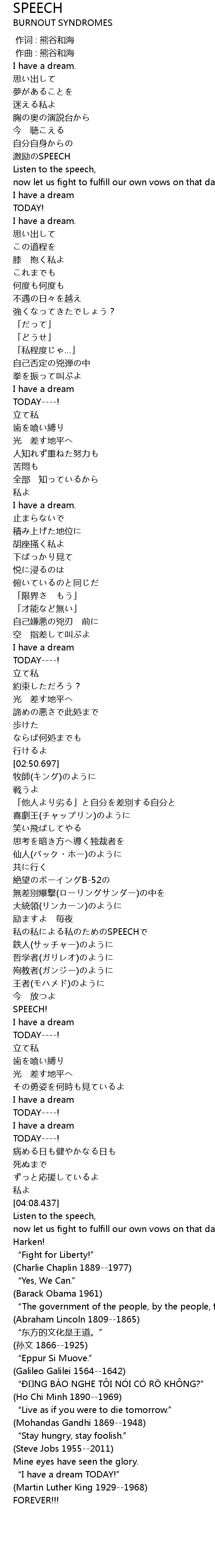 | [03:11.125] | 私の私による私のためのSPEECHで |
