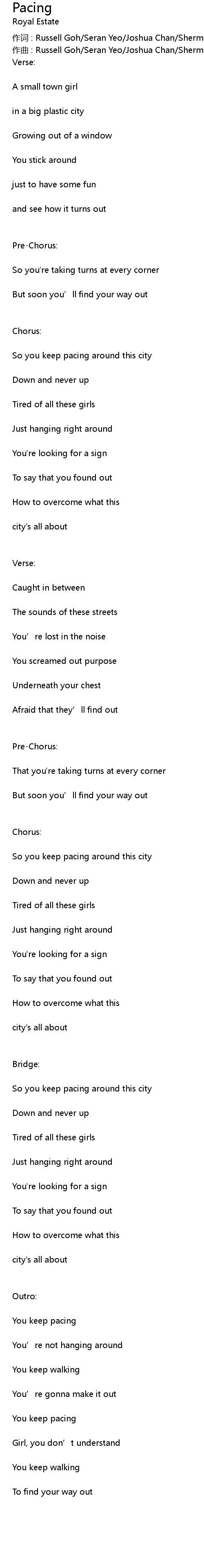 | 作词 : Russell Goh/Seran Yeo/Joshua Chan/Sherman Lee | |