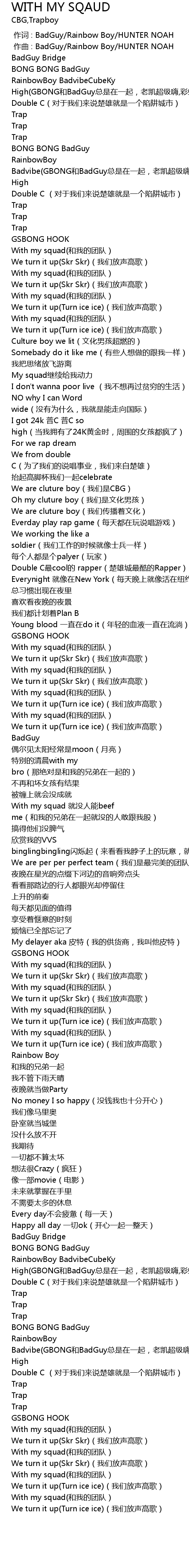 | [02:08.582] | With my squad hé wǒ de tuán duì |
