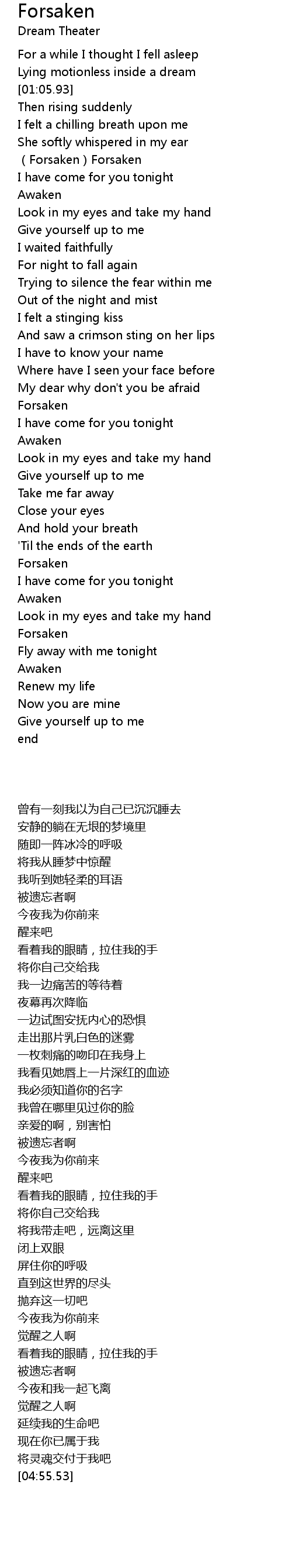 | [04:01.22] | Forsaken |