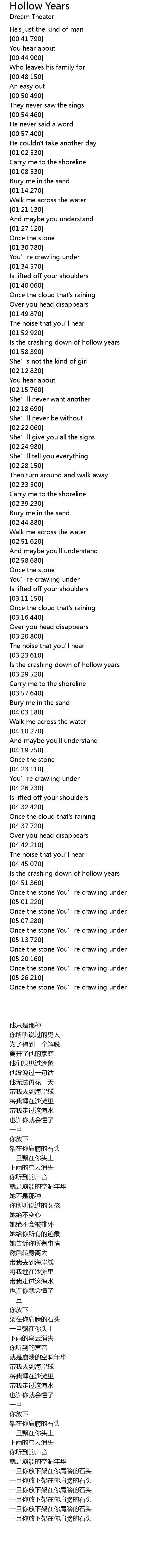 | [05:01.900] | Once the stone You' re crawling under |
