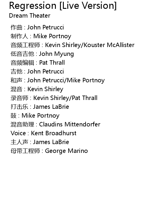 | [00:00.000] | 打击乐 : James LaBrie |