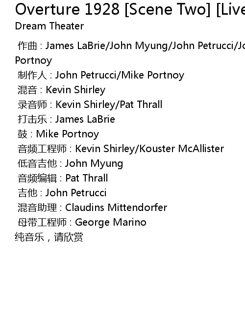 | [00:01.000] | 制作人 : John Petrucci/Mike Portnoy |