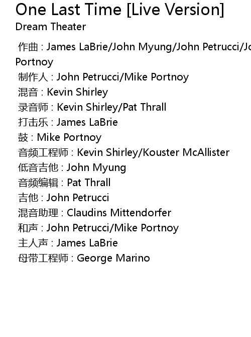 | [00:00.000] | 打击乐 : James LaBrie |