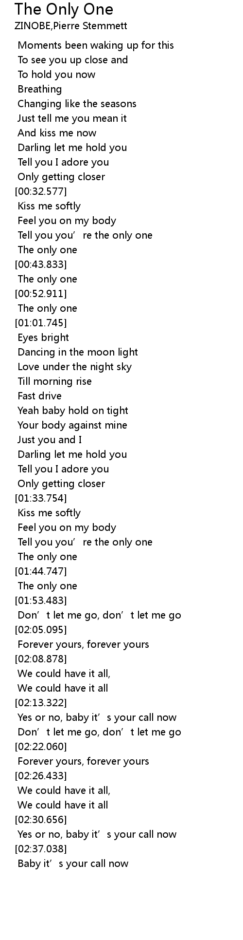 | [01:39.206] | Tell you you’re the only one |