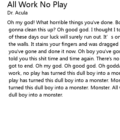 | play has turned this dull boy into a monster. Monster. All work no play has | |