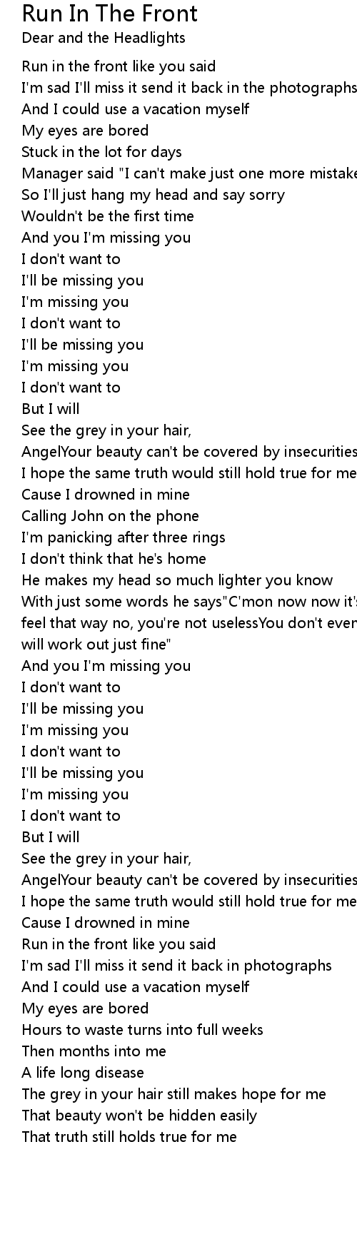 With just some words he says"C'mon now now it's not so badI'm sorry that you feel that way no, you're not uselessYou don't even have to think about itThings will work out just fine" |