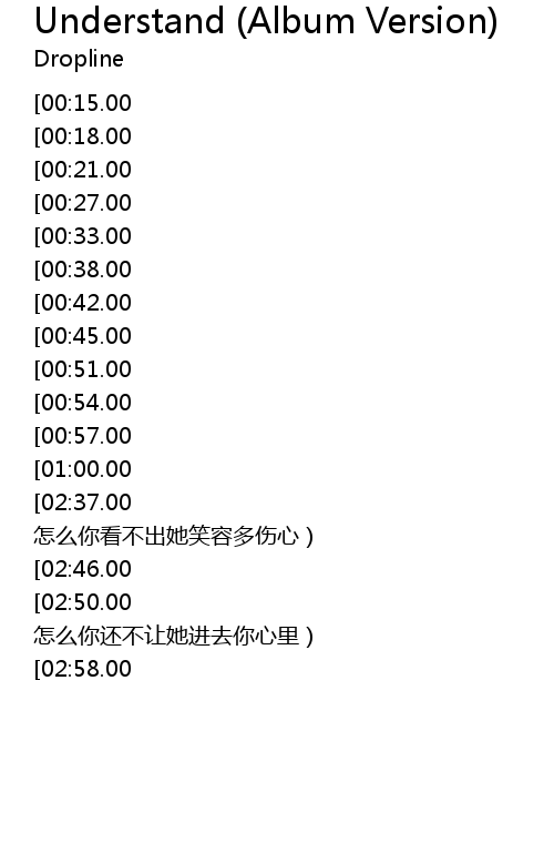 | [03:25.00][02:58.00][01:26.00] | Come on baby say you understand |