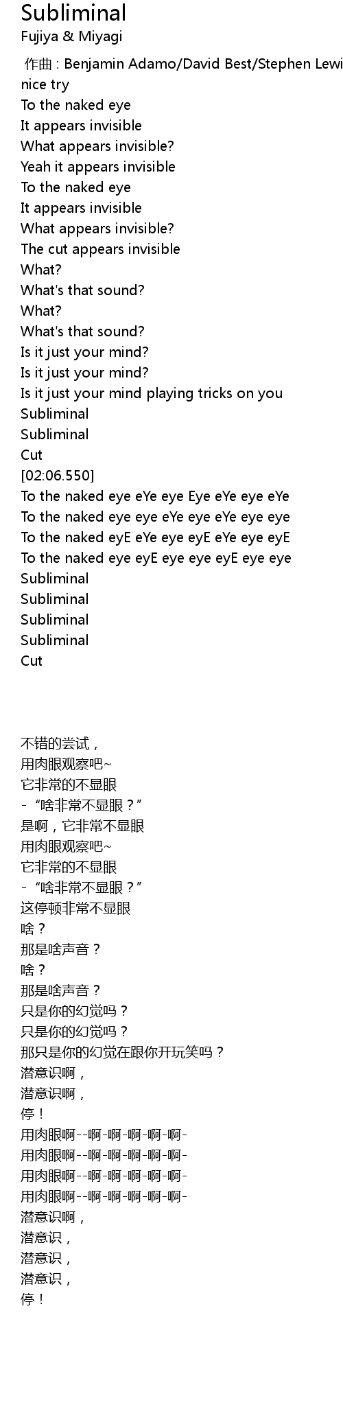 | [02:19.272] | To the naked eye eye eYe eye eYe eye eye |