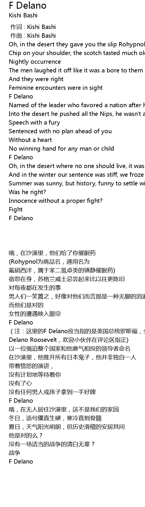 | [00:19.77] | Oh, in the desert they gave you the slip Rohypnol |
