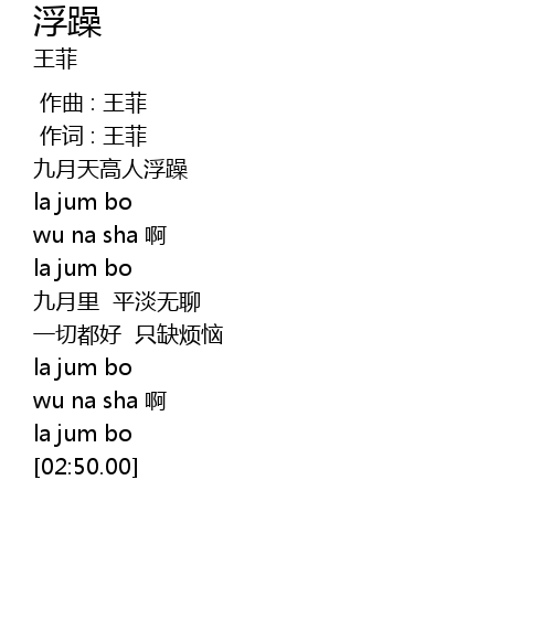 | [00:00.00] | 作曲 : 王菲 |