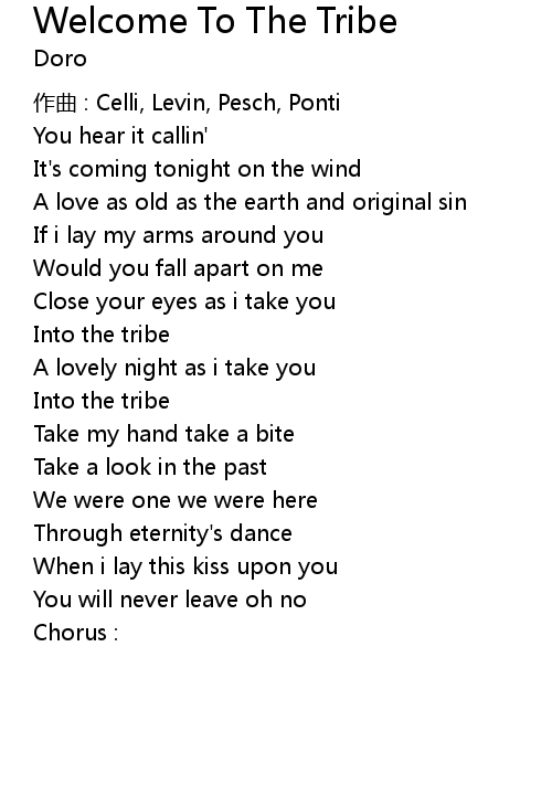 | Song | Welcome To The Tribe |