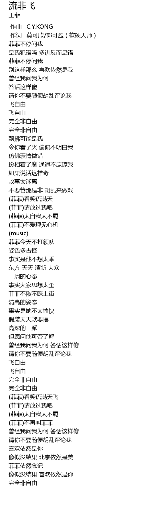 | [01:16.0] | (菲菲)太自我太不羁 |