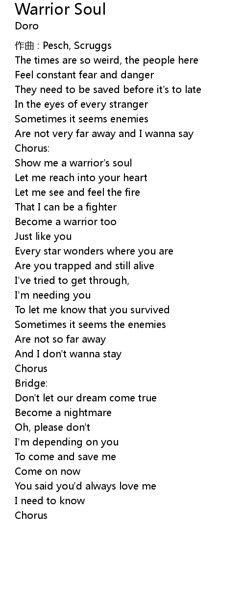 | Show me a warrior' s soul | |