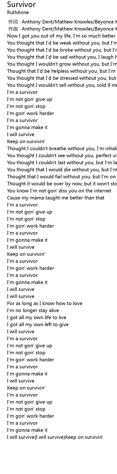 | [00:59.09] | You thought I couldn't last without you, but I'm lastin' |