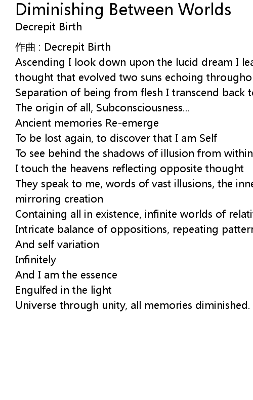 | Song | Diminishing Between Worlds |