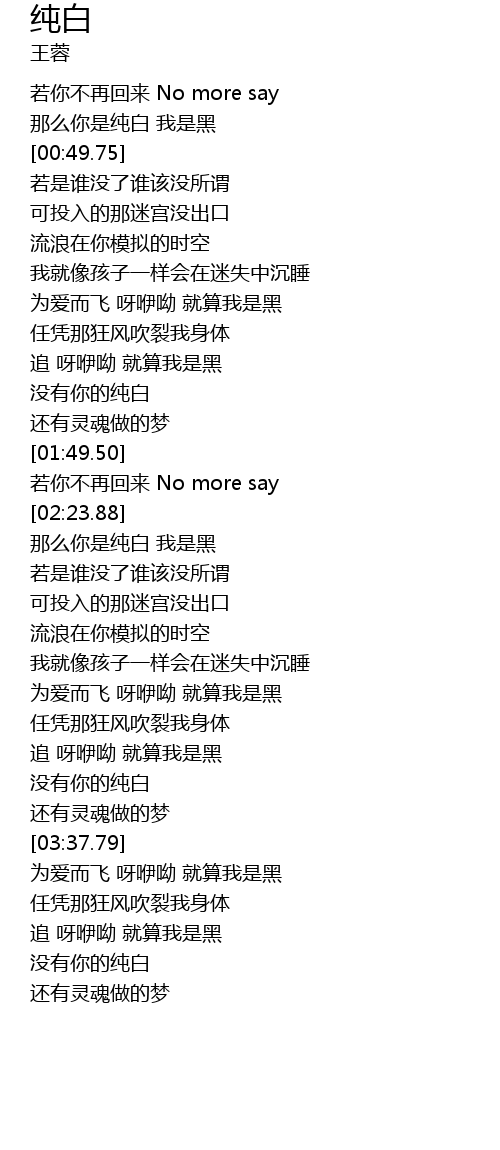 | [03:26.24] | méi yǒu nǐ de chún bái |