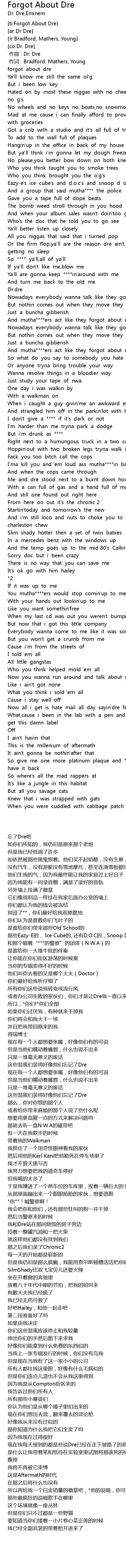 | [01:23.858] | And mutha****ers act like they forgot about dre |