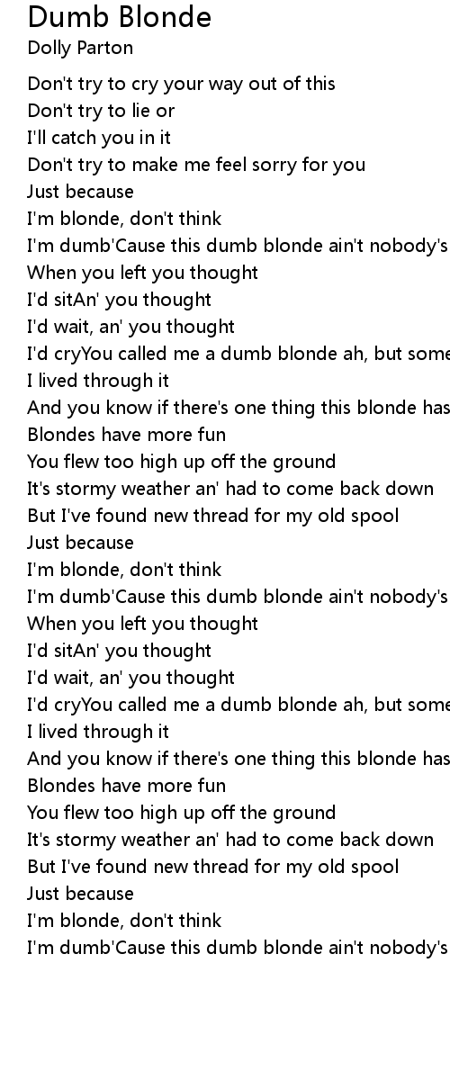 I'm dumb'Cause this dumb blonde ain't nobody's fool |