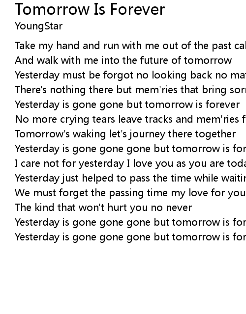 | Yesterday is gone gone gone but tomorrow is forever | |