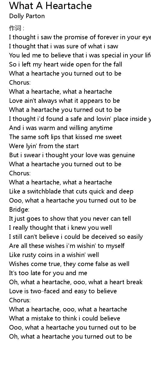 | Oh, what a heartache, ooo, what a heart break | |