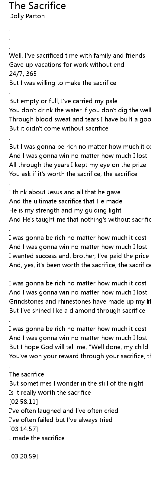 And, yes, it's been worth the sacrifice, the sacrifice |