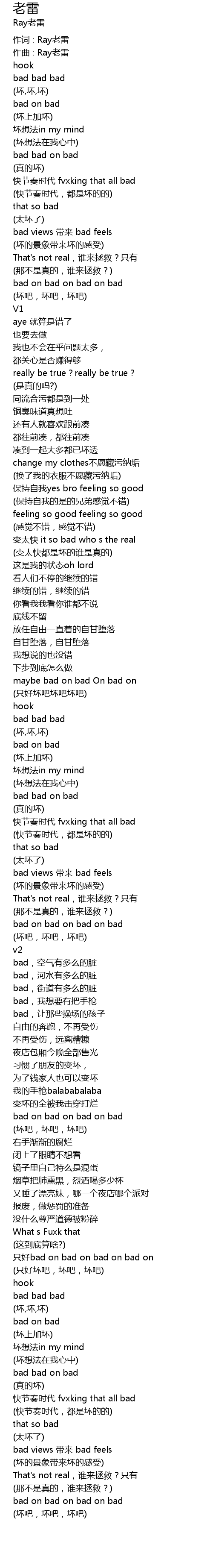 | 作词 : Ray老雷 | |