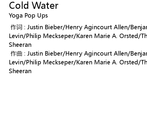 | [00:00.000] | 作曲 : Justin Bieber/Henry Agincourt Allen/Benjamin Joseph Levin/Philip Meckseper/Karen Marie A. Orsted/Thomas Wesley Pence/Jamie Scott/Ed Sheeran |