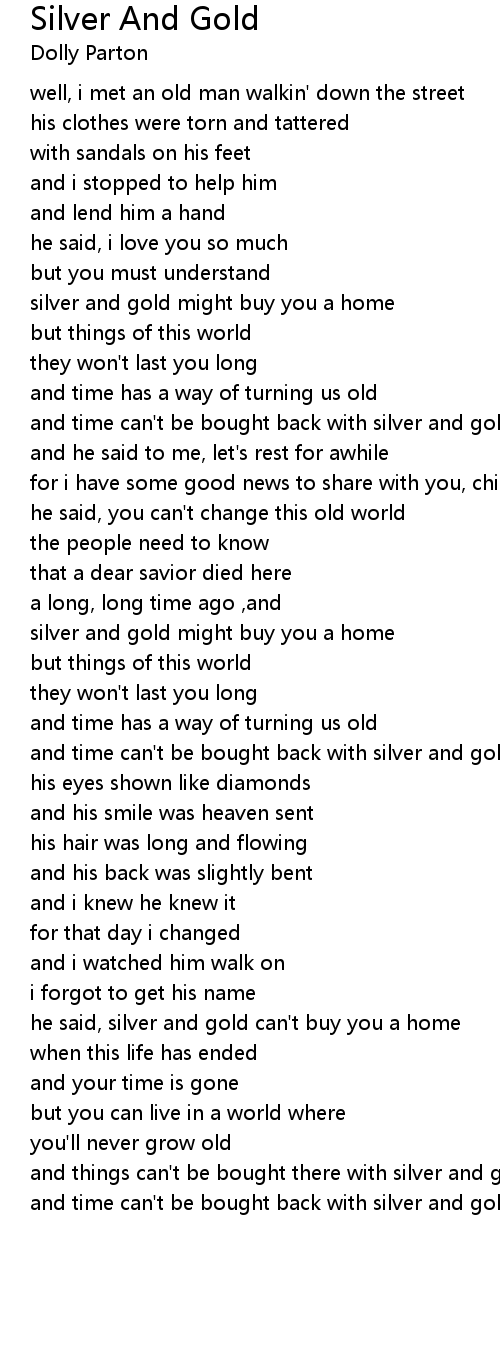 he said, silver and gold can't buy you a home |