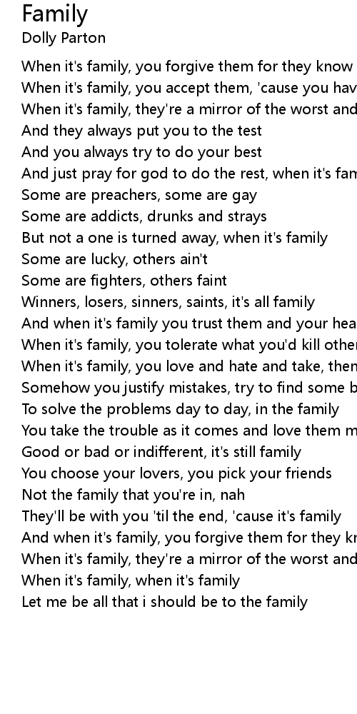 And just pray for god to do the rest, when it's family |